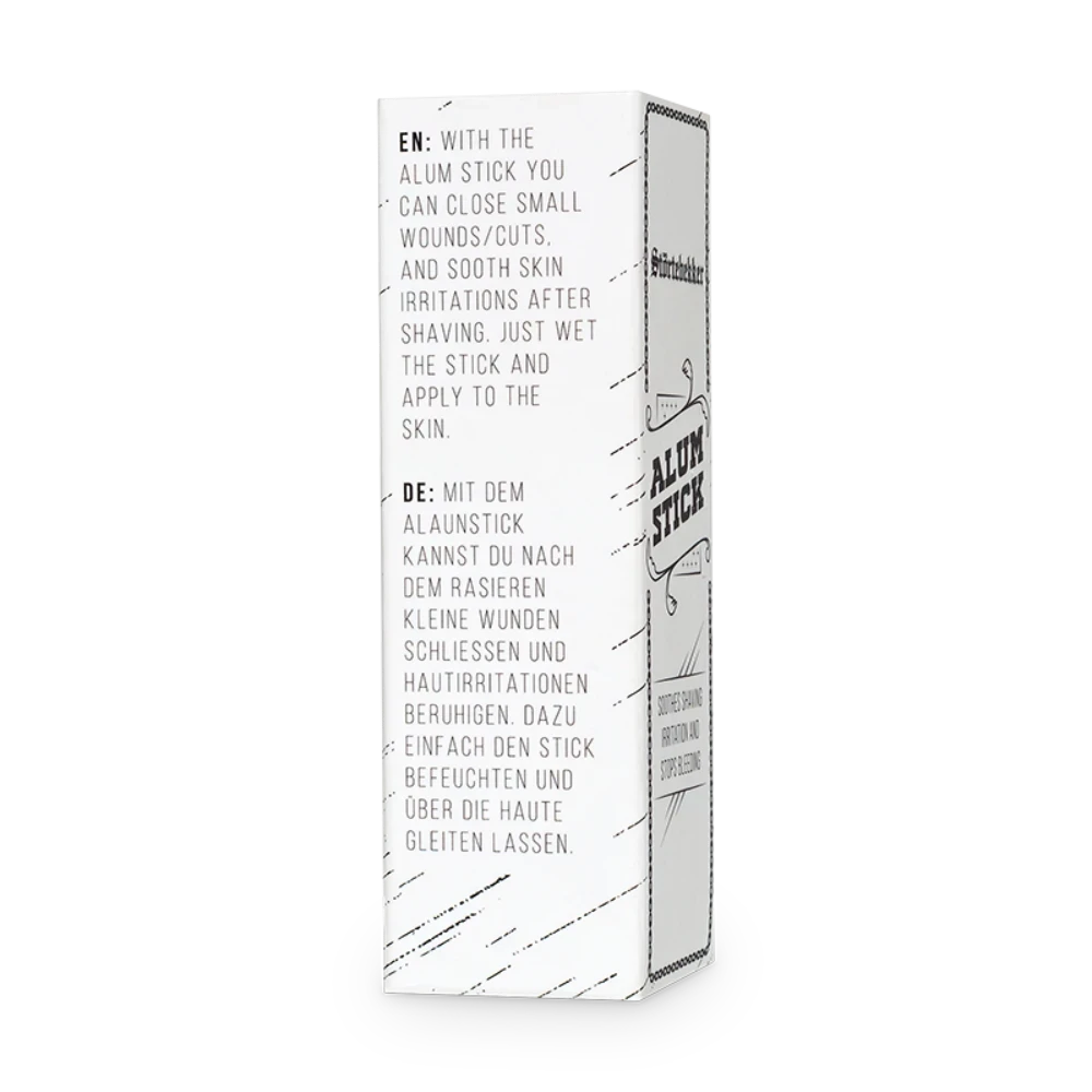 Beim Rasieren mit klassischen Werkzeugen wie einem Rasierhobel oder einem Rasiermesser kann es leicht zu kleinen Schnittverletzungen kommen. Genau hier kommt unser Alaunstift ‚Nordfels‘ ins Spiel: Er stoppt die Blutung schnell und sorgt gleichzeitig für eine beruhigte und desinfizierte Haut.
