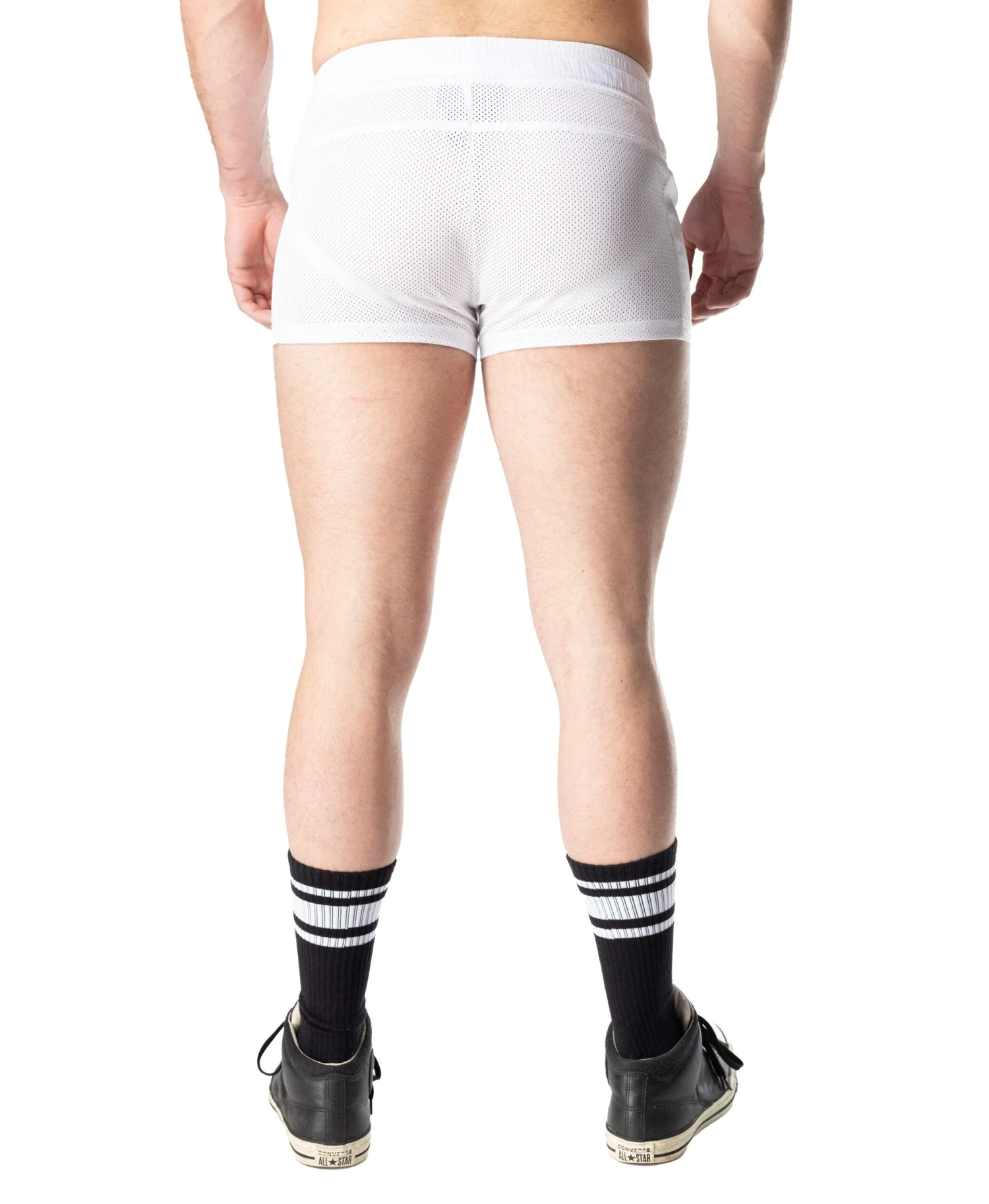 The Bare Trunk Short is back for SS25 in sheer, translucent White. A shorter, tighter take on our cult-favorite Bare Rugby, these onion skin mesh shorts hug just right and leave little to the imagination. Perfect for showing off your jock, your thighs, and your confidence. Limited drop — built to move, made to tease.