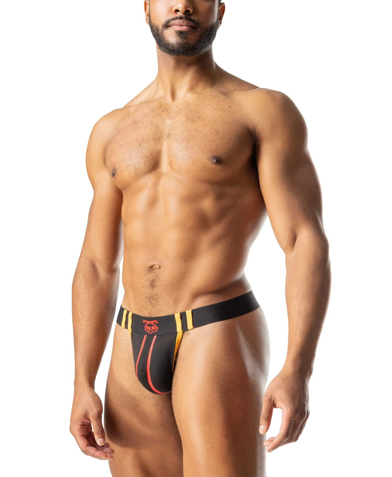 The Contender Thong doesn’t pull punches. This MMA-inspired piece brings bold color, high contrast, and just enough coverage to keep the crowd guessing. With red and gold piping framing the pouch and that barely-there back, it’s built for fighters who like to show off their form. Cool, comfortable, and cocky as hell—this thong’s made to knock ‘em out before the bell even rings.