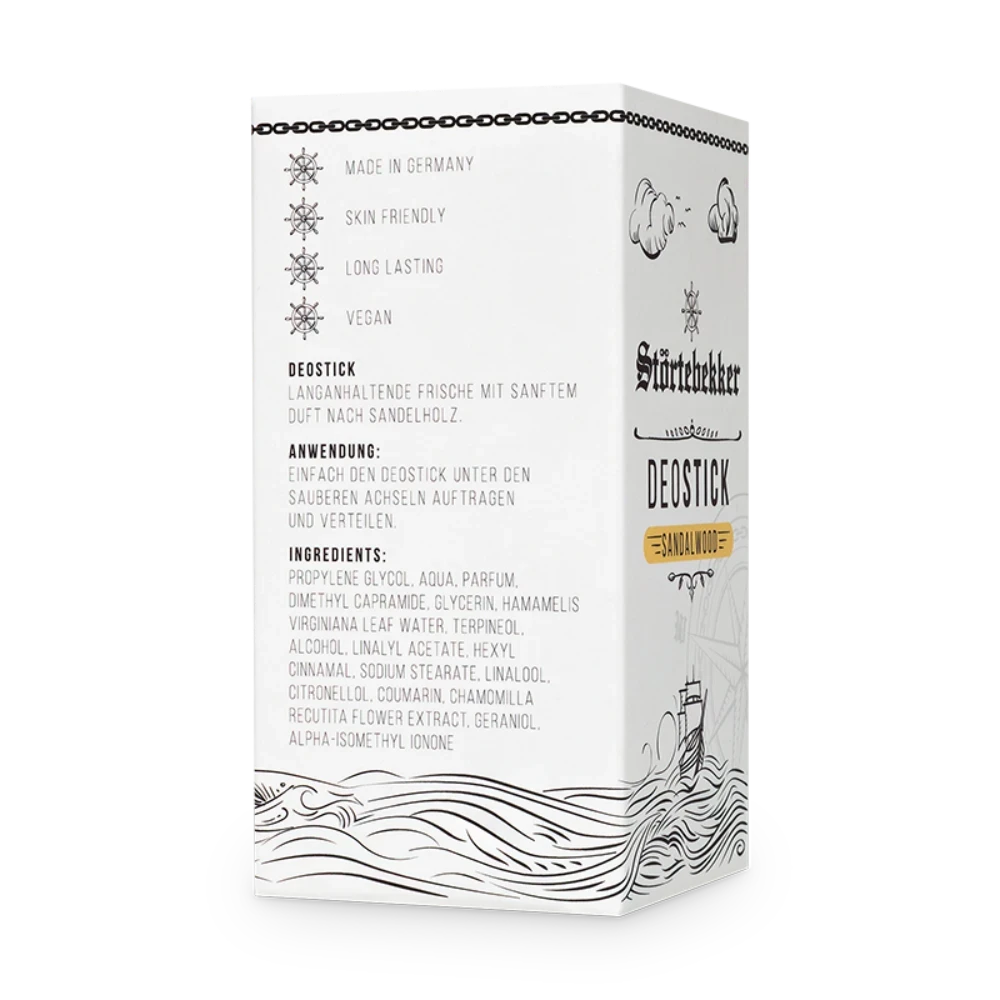 Mit dem Störtebekker Deostick mit Sandelholzduft genießt du langanhaltenden Schutz und natürliche Frische für deinen Alltag. Einfach den Deostick unter den sauberen Achseln auftragen und sanft verteilen, um unangenehmen Gerüchen vorzubeugen und ein angenehmes Gefühl von Trockenheit und Frische zu schaffen.
