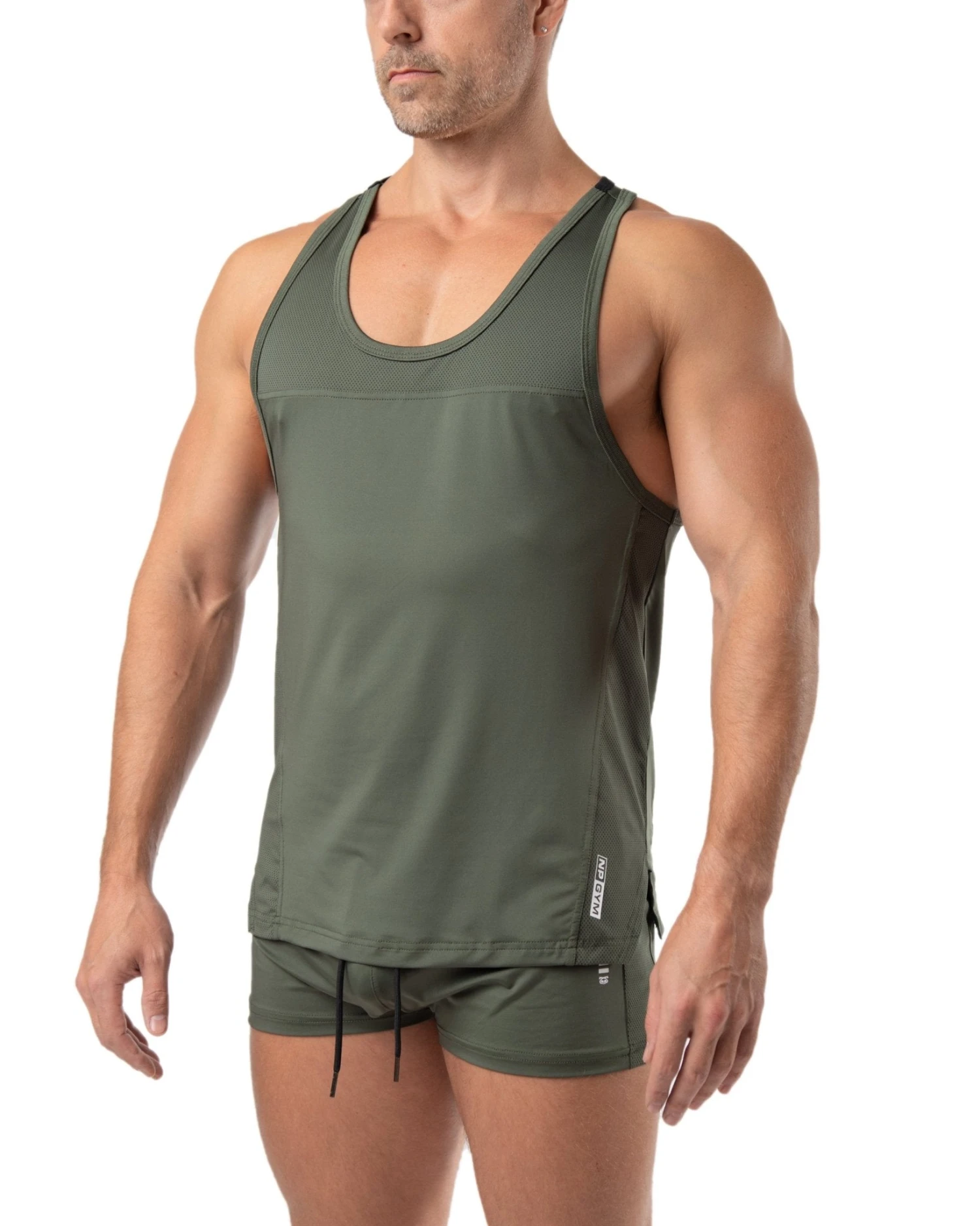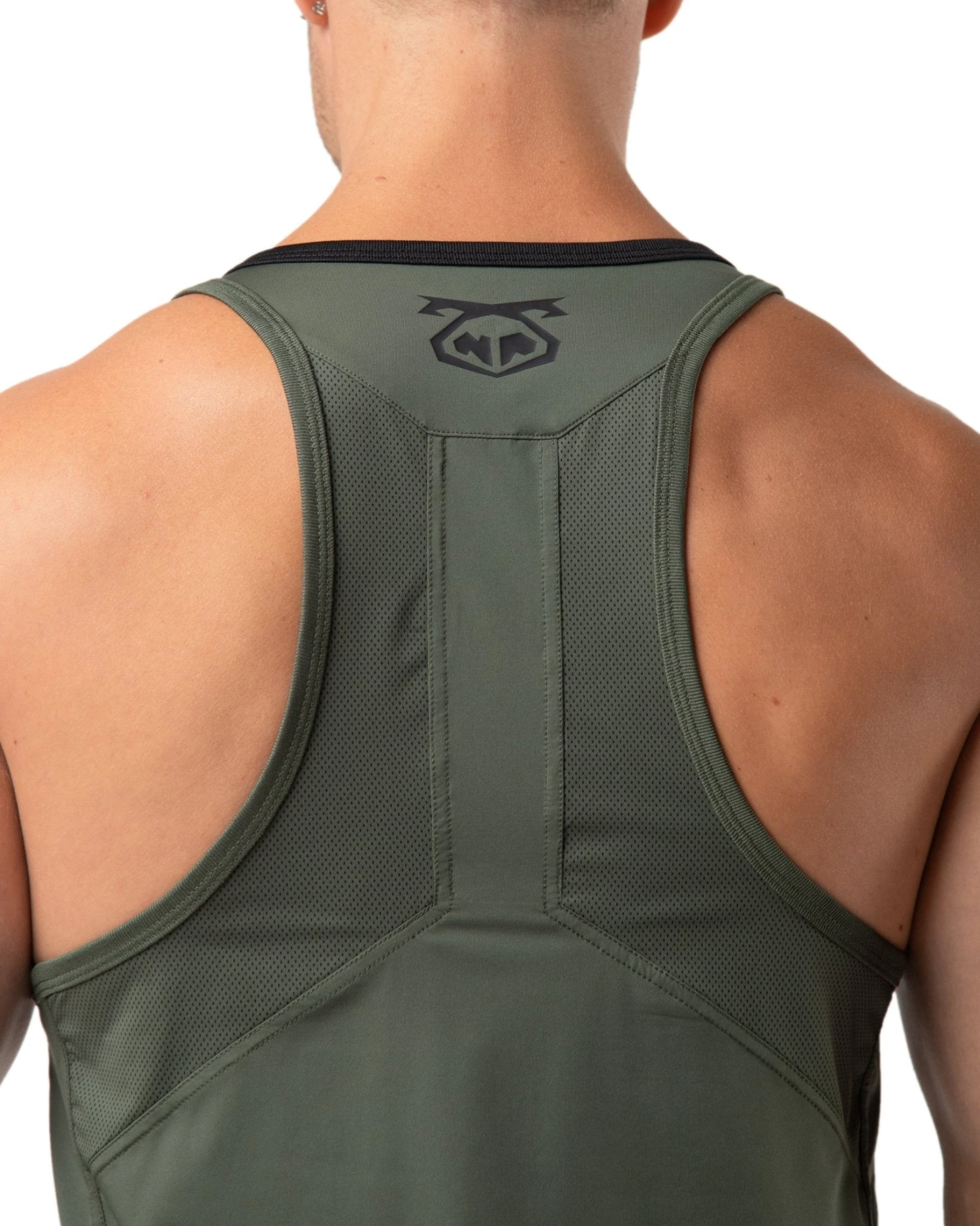 Designed with the athlete in mind, this green-and-black tank top features a T-shaped back that allows for ease of movement, whether you’re lifting, running, or stretching.
