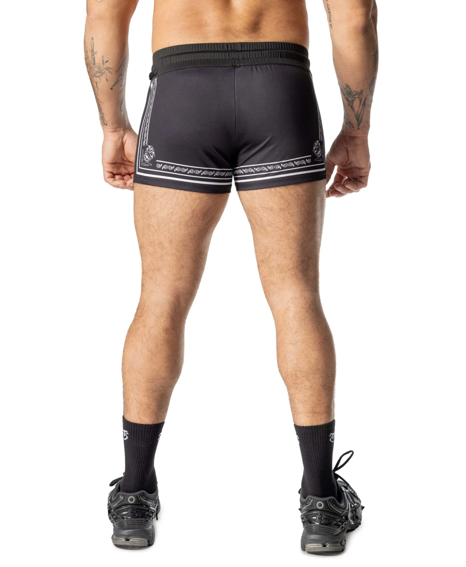 Inspired by classic hank code culture, the Nasty Pig bandana-style print makes a statement whether you’re poolside, at the gym, or on the street. The elastic waistband with a drawstring closure ensures a perfect fit, while the lightweight, quick-dry fabric keeps you feeling fresh. Less fabric, more attention…