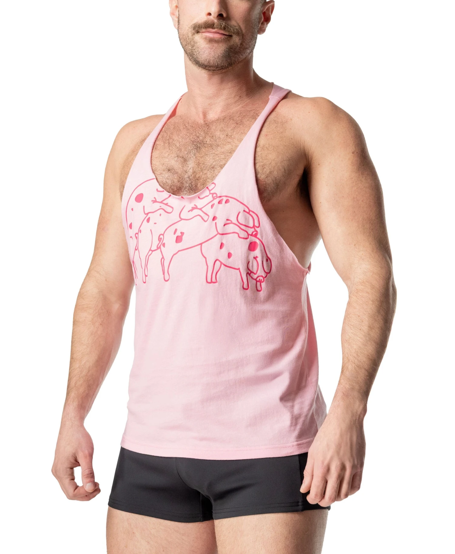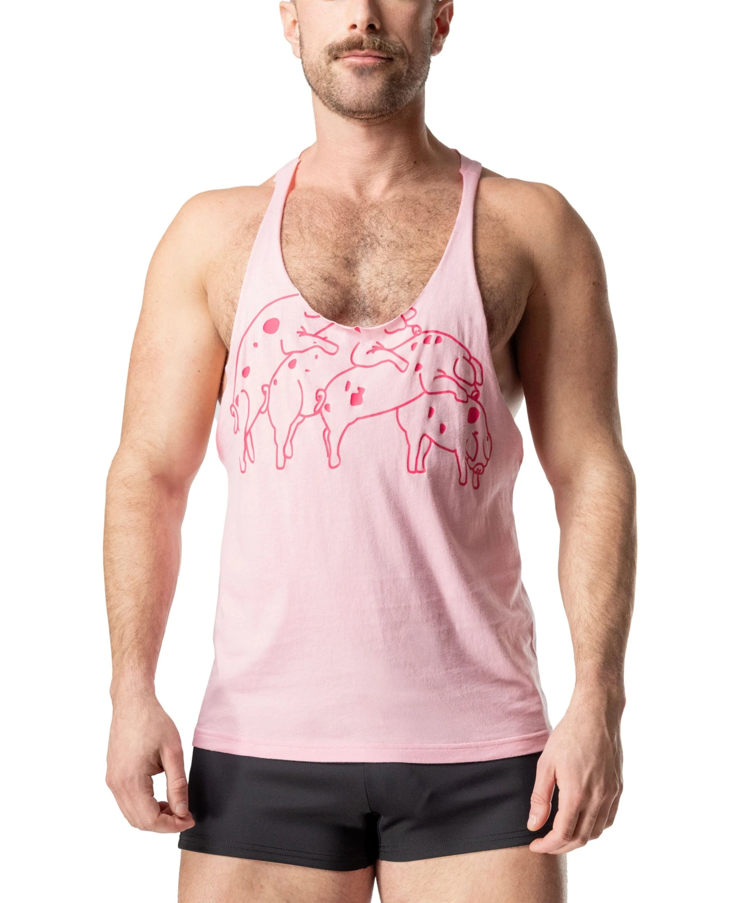 The iconic Humping Pigs tee just got a little more…horny—meet the Humping Pigs Skank Tank in Pink. This Nasty Pig classic is reborn as a raw-cut, low-drop muscle tank that shows off your chest, arms, and attitude. The stacked pig pile print screams OG Nasty Pig, while the Snout Logo on the upper back keeps it 100% authentic. A must-have for fans, pigs, and collectors.