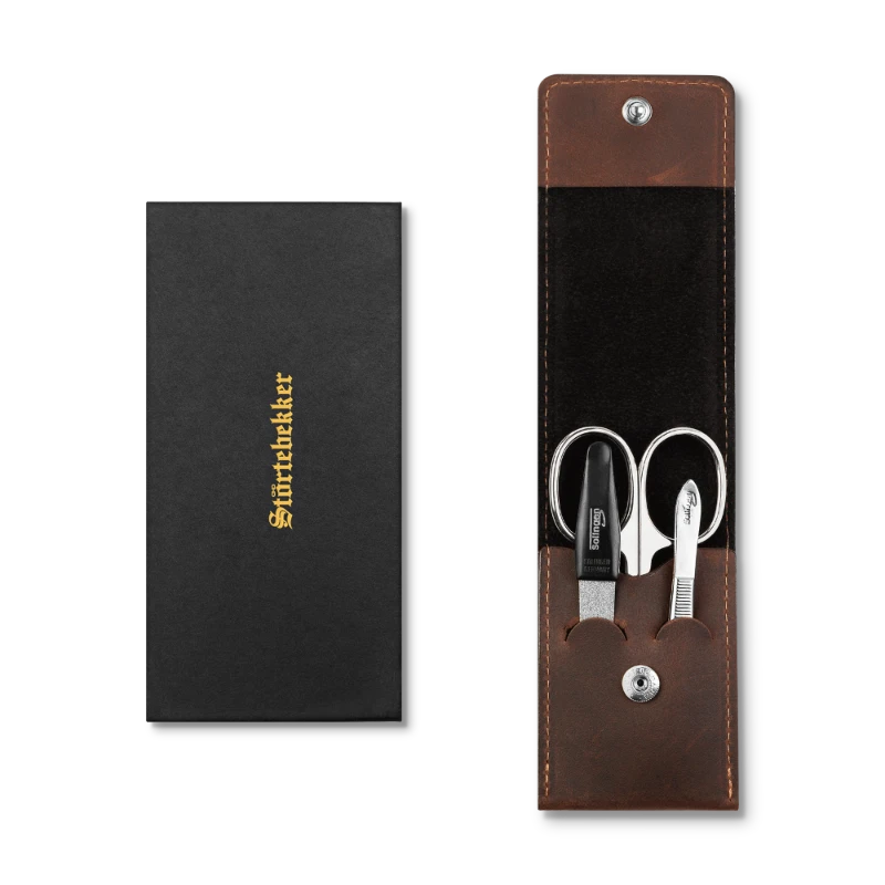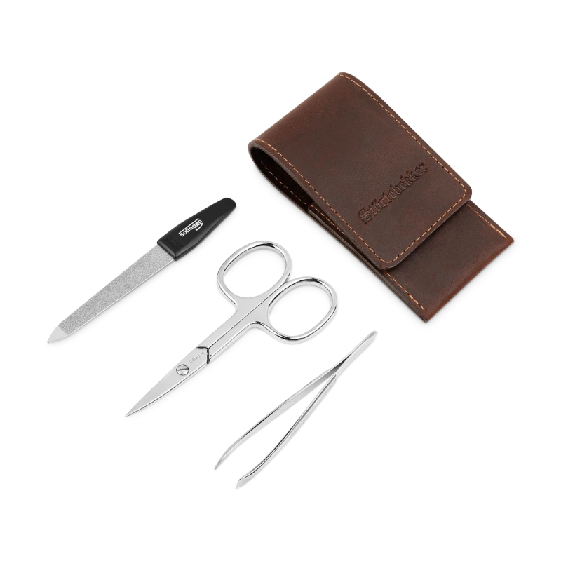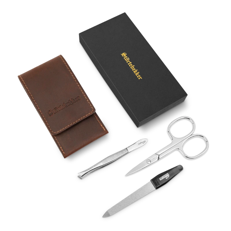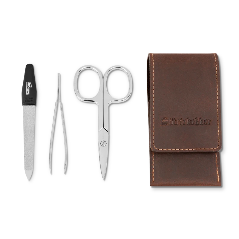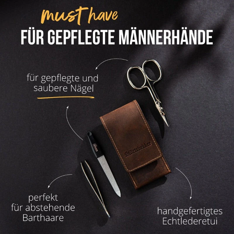 Für gepflegte Männerhände ist unser Nagelset ‚Meridian‘ ein absolutes Must-Have. Unser Maniküreset beinhaltet eine Schere, eine Feile und eine Pinzette aus rostfreiem Edelstahl. Das mitgelieferte, hochwertige feinste Lederetui in Wildlederoptik sorgt dafür, dass das Set immer perfekt geschützt ist.