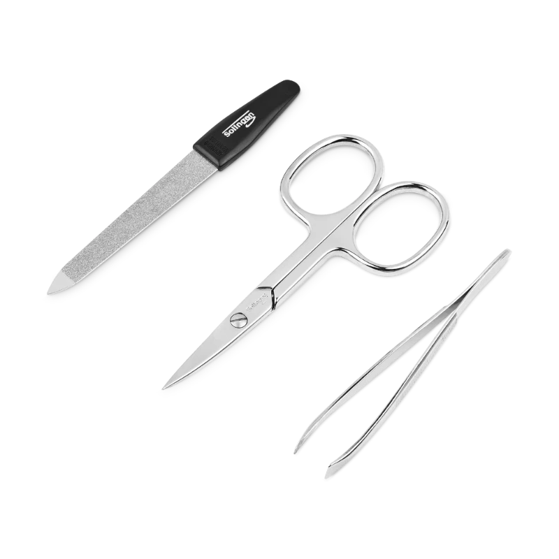 Dank der scharfen Klingen lassen sich Deine Nägel mit der Schere präzise schneiden, ohne dass es zu Rissen oder Brüchen kommt. Die Pinzette ist perfekt für die Entfernung von Nagelhaut oder anderen unerwünschten Hautpartikeln geeignet. Auch abstehende Barthaare oder Augenbrauen lasen sich mit der Pinzette ganz einfach entfernen. Mit der Feile kannst Du Deine Nägel in die gewünschte Form bringen und raue Stellen und Ecken und Kanten entfernen. Dadurch bleiben Deine Nägel immer sauber und gepflegt.