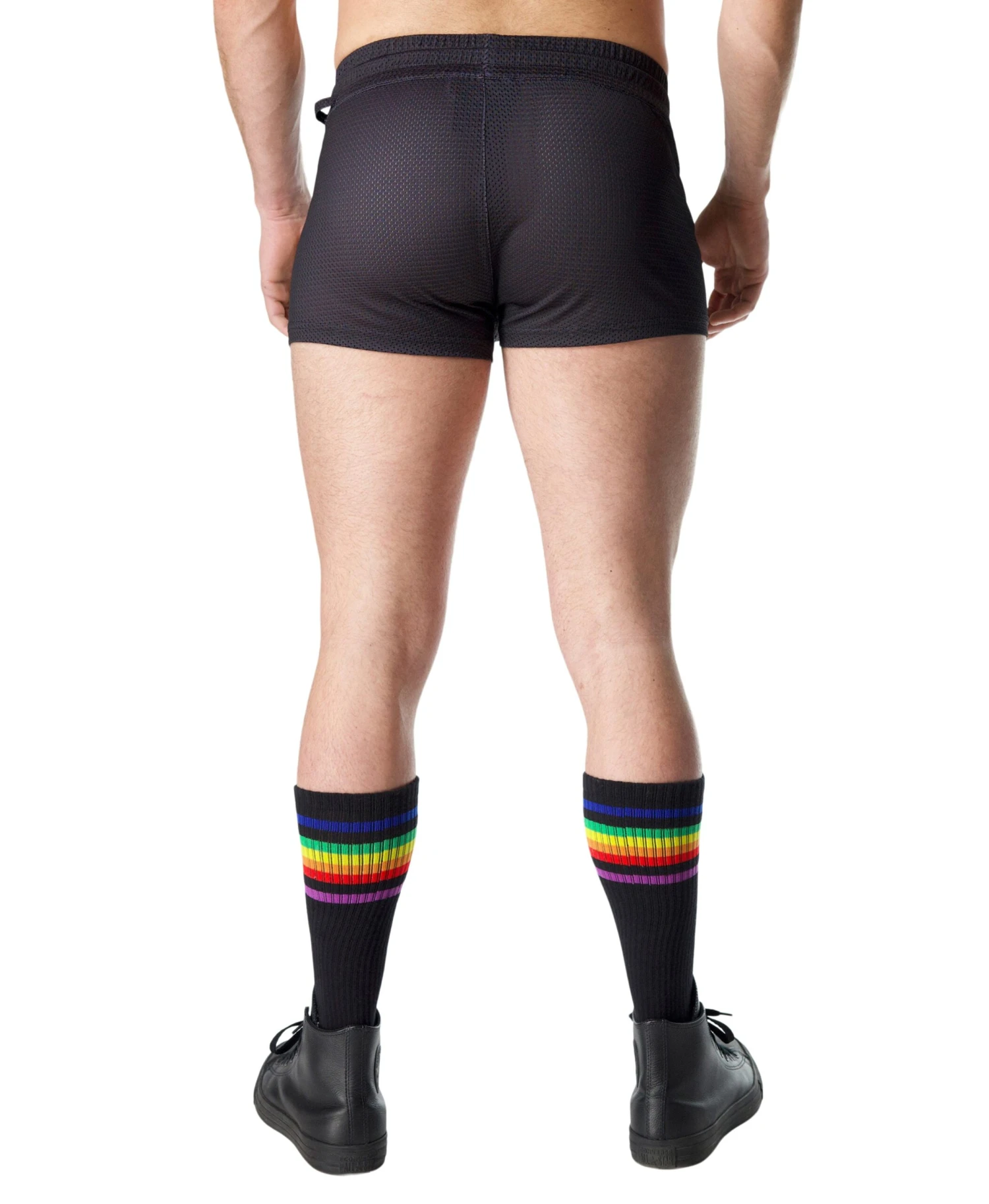 Gear up and show out in the Prism Pride Trunk Short. Made from breathable black mesh that hugs just right, this trunk delivers serious attitude. The rainbow-stamped Nasty Pig logo pops hard, while the adjustable drawstring keeps it tight where it counts. Bonus: a built-in shirt loop lets you go hands-free when it’s time to ditch the top and flex. You ready to turn heads? Damn right.