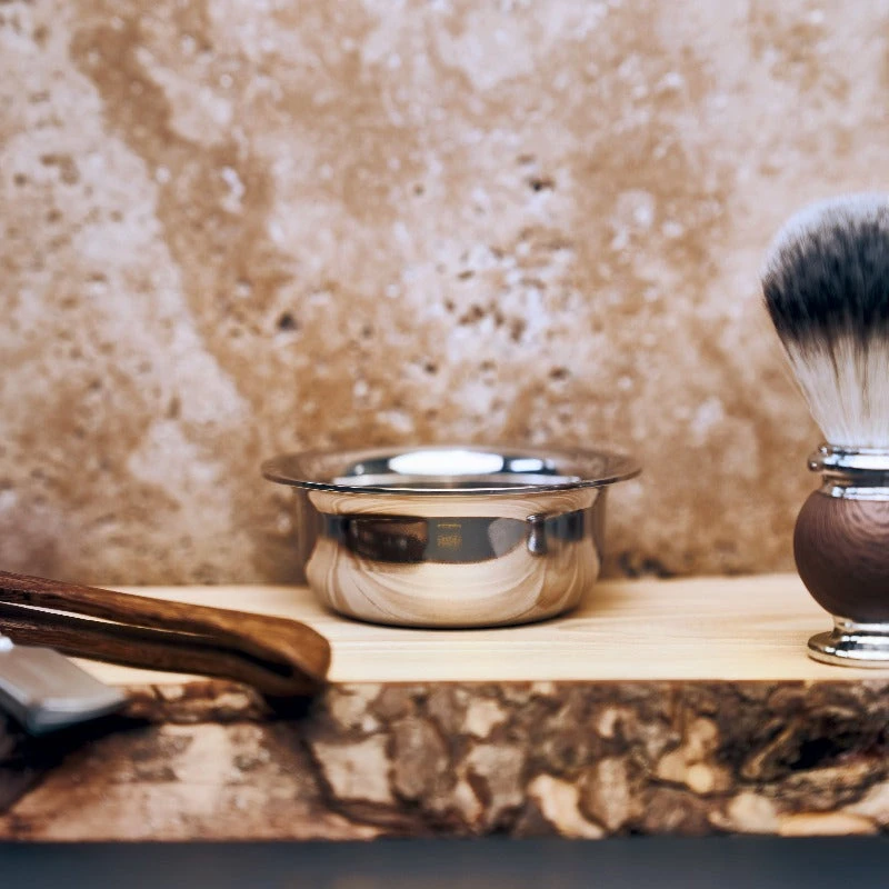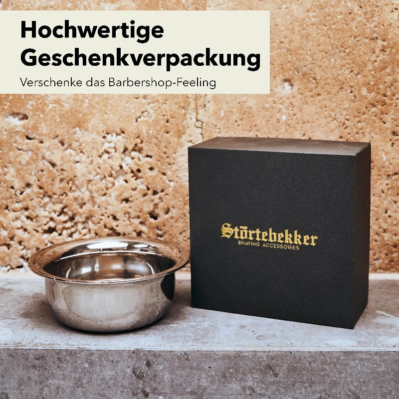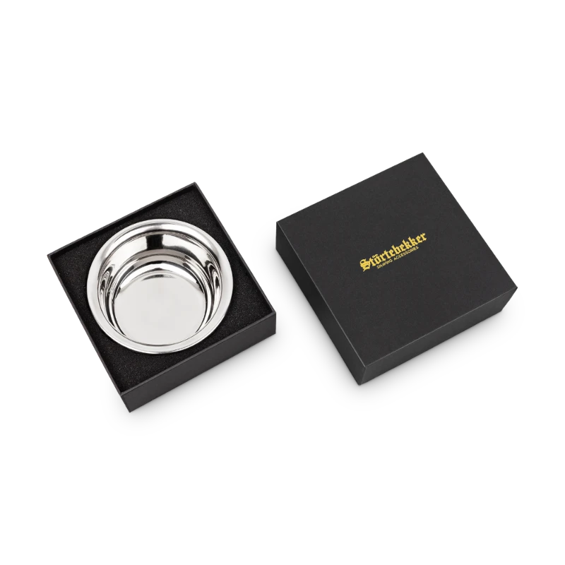 Die Rasierschale ‚Compass‘ von Störtebekker ist essenziell für Deinen eigenen Rasierschaum. Die Schale ist edelstahlbeschichtet, wodurch die Oberfläche sehr wenig Reibung hat. Dadurch kannst Du in wenigen Minuten Deine Rasierseife anrühren. In die Rasierschale passt die Rasierseife perfekt hinein, sodass sie nicht verrutscht und kein Schaum hinausläuft.