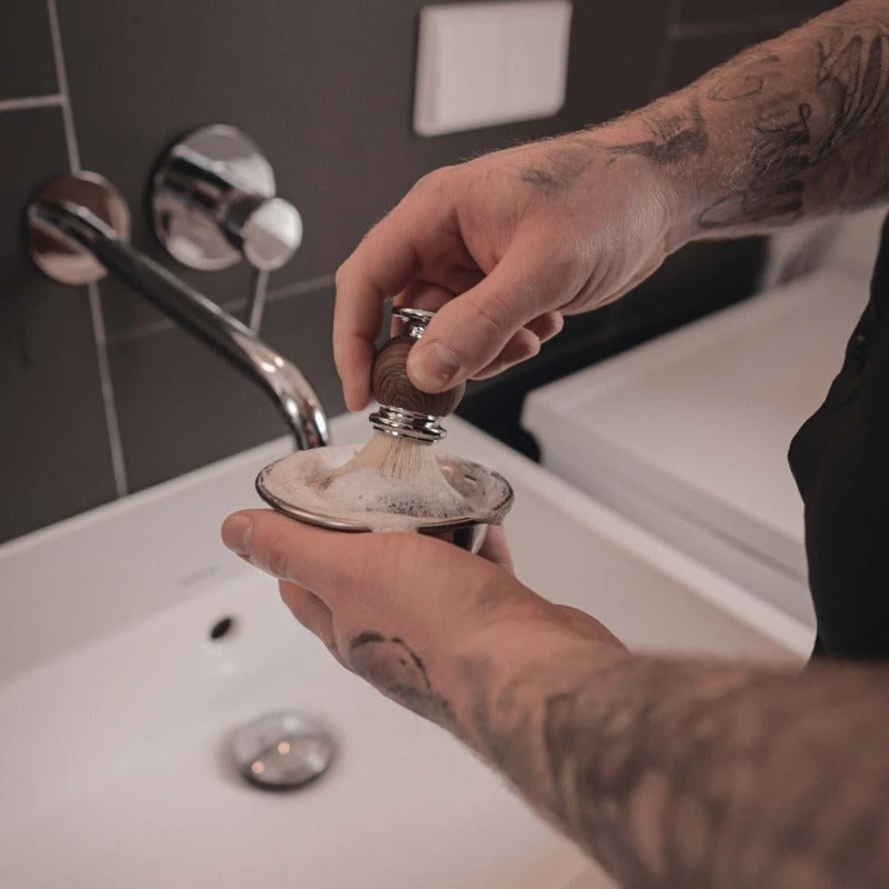 Für das Aufschäumen des Schaums empfehlen wir unseren Rasierpinsel und die Rasierseife.