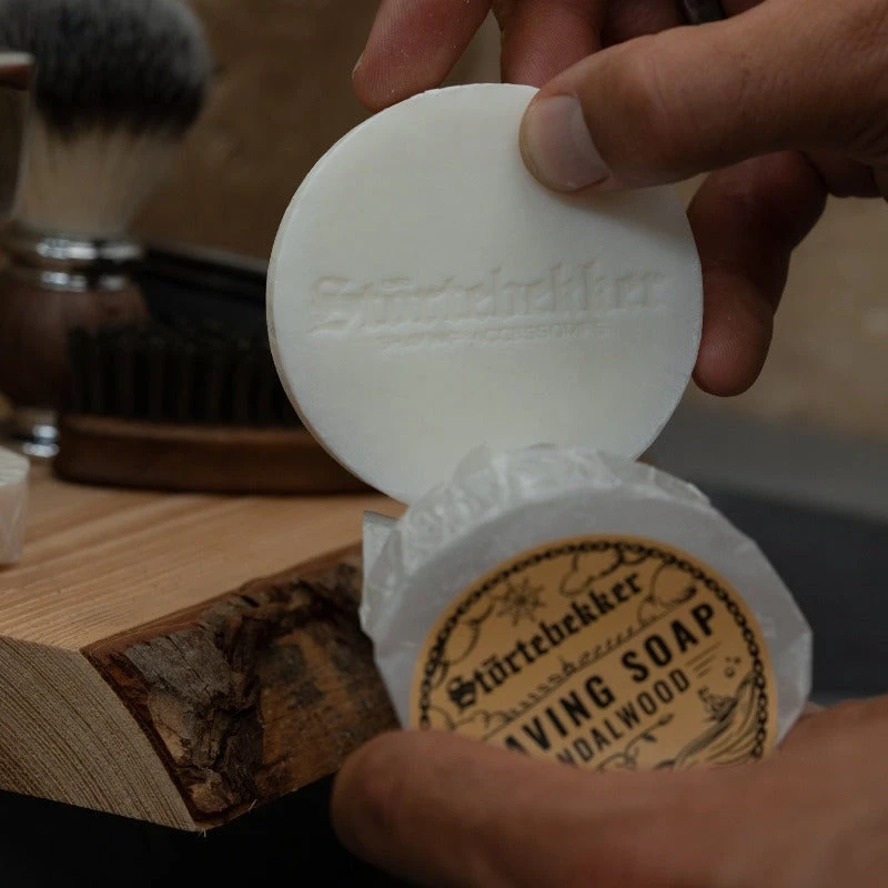 Die Störtebekker-Rasierseife erzeugt den perfekten Schaum für Deine Rasur. Mit der angenehmen Sandelholz-Note sorgt die Seife bei jeder Anwendung für ein Dufterlebnis. Auch für empfindliche Haut bestens geeignet, öffnet der Schaum die Haarkanäle und macht Dein Barthaar schön weich. Die perfekte Vorbereitung auf die Rasur mit Rasierhobel oder Rasiermesser.