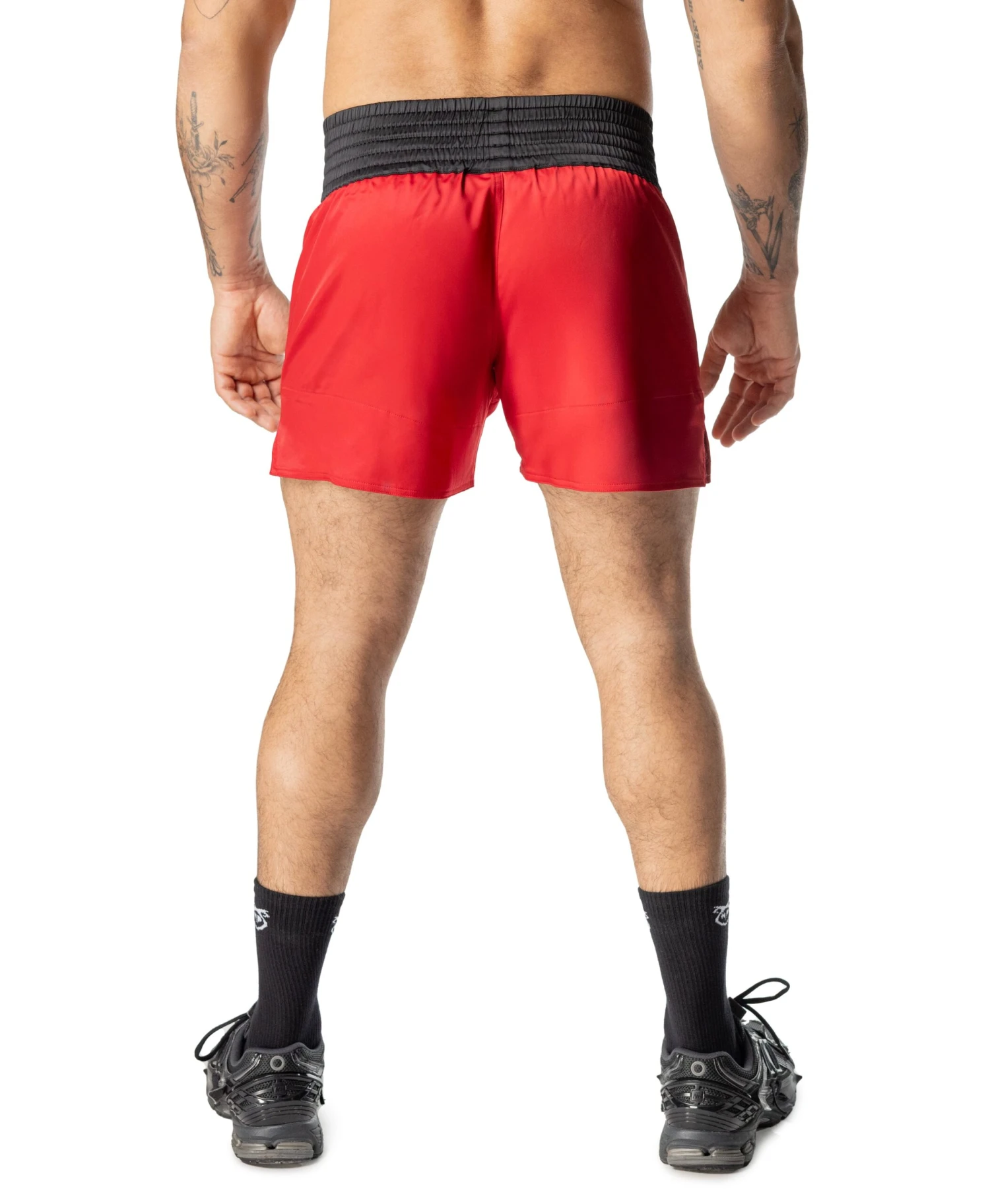 Unleash your inner Boxer with the TKO Trunk Short in bold red, gold, and black. This traditional boxing short is made of lightweight poly with a thick elastic waistband, allowing you to focus on performance, delivering knockout sex appeal in and out of the gym. The bold XXX waistband says you can go round after round, while the sporting stripes on the leg signals you’re part of the Nasty Pig tribe. Sporty, sweaty, and unapologetically hot—these shorts don’t play.